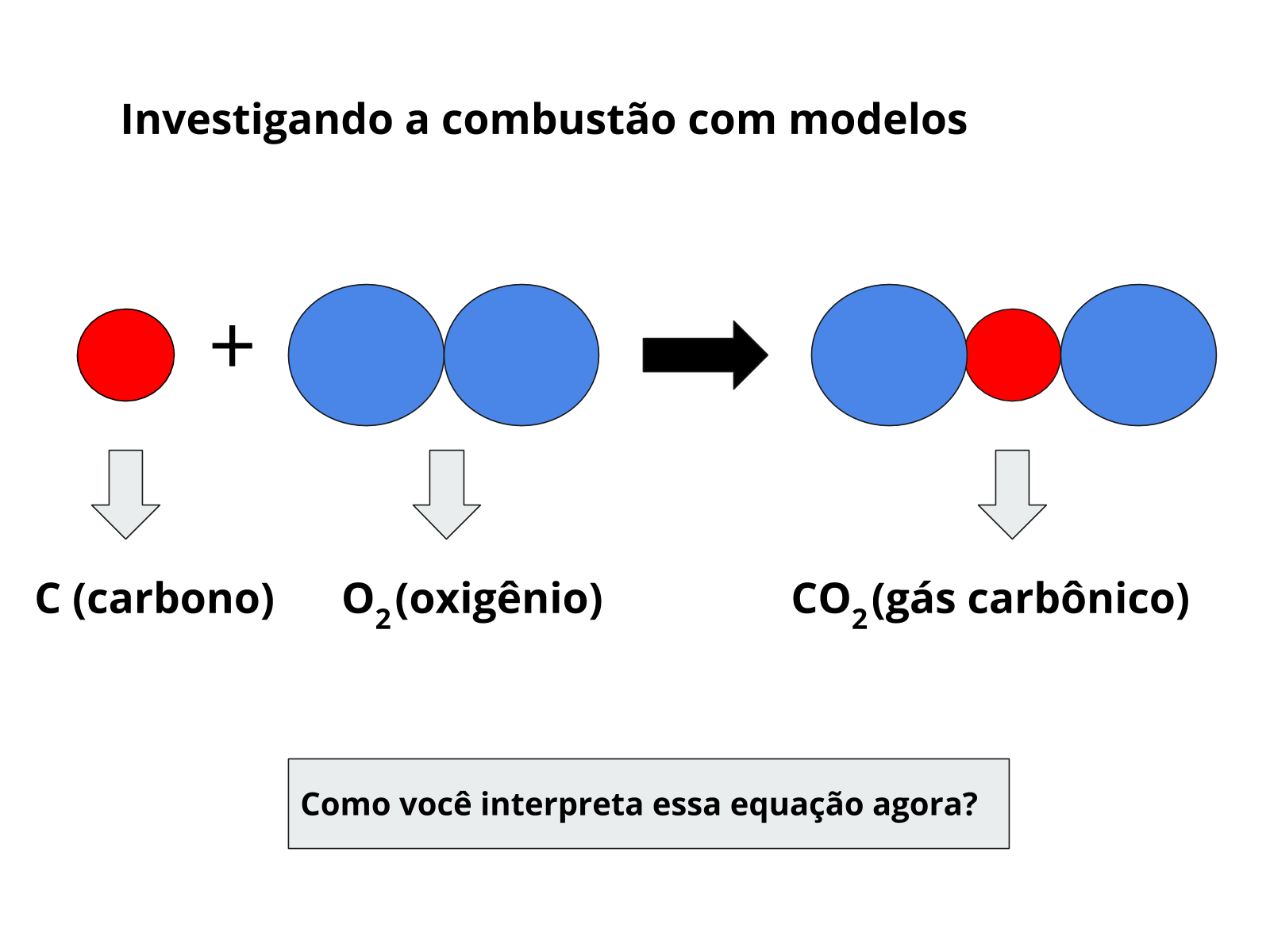 Por se tratar de um processo químico (os materiais utilizados antes serão transformados em novos materiais), podemos representar a combustão através de uma equação, porém é necessário informar que para que uma reação de combustão ocorra é necessária a presença de gás oxigênio (O2).