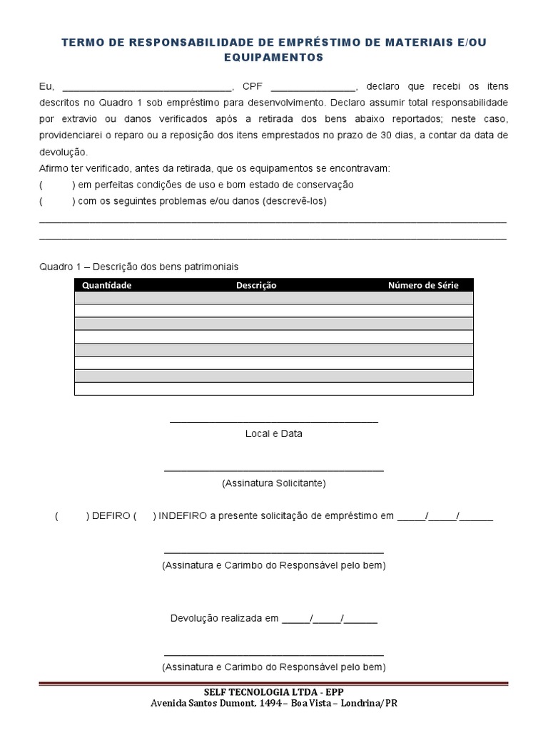 Termo de Responsabilidade de Empréstimo | PDF